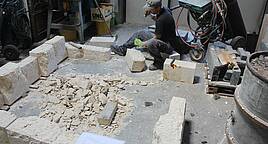 Entstehung einer handwerklich bearbeiteten Doppelgrabanlage aus Kalkstein